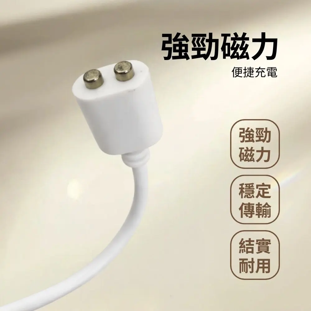 ✔ 電壓穩定 ✔ 磁吸式充電 ✔ 金屬鍍銅觸點 ⚠️注意 旅充頭規格【限使用5V⎓1A旅充頭】 額定輸入電壓不支援使用2A以上旅充頭 因人為使用導致本體/充電線出現過熱損壞祝融 不在商品保固範圍內,請慎選旅充頭之規格
