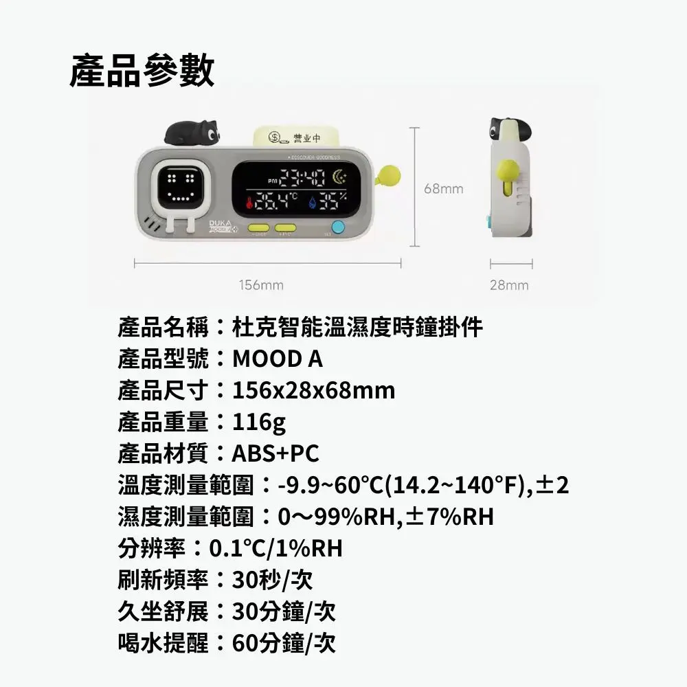 產品名稱:杜克智能溫溼度時鐘掛件