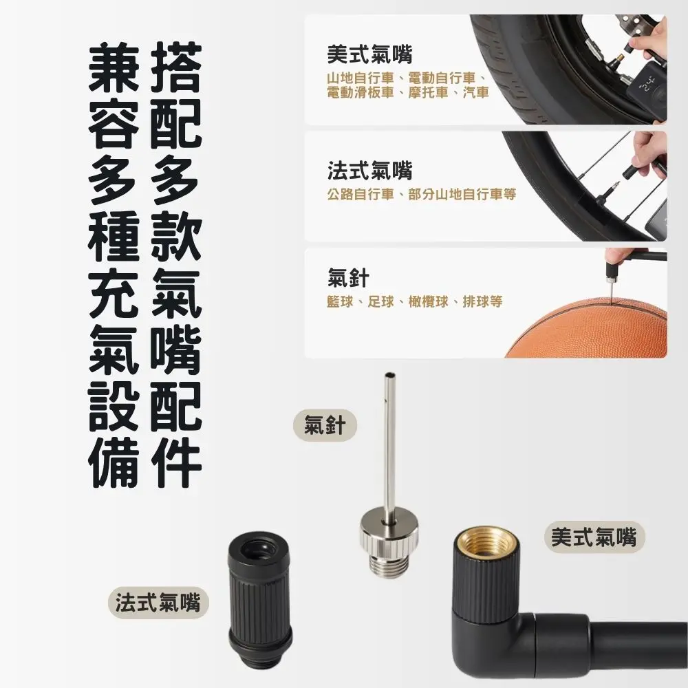 ✔ 搭配多款氣嘴配件 兼容多種充氣設備