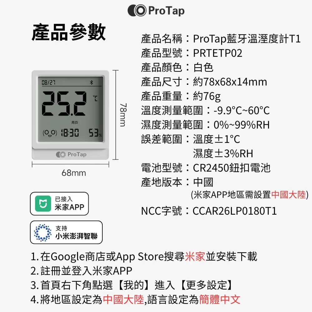 產品名稱:ProTap藍牙溫溼度計T1