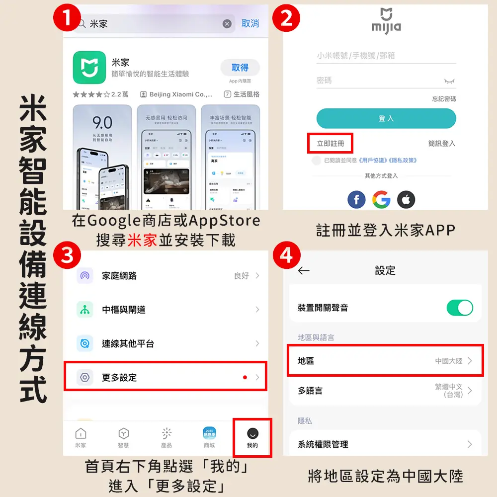 進入【米家APP】需先到設置【地區與語言】