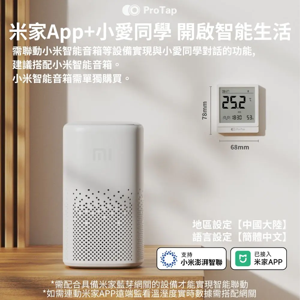 (如需連動米家APP遠端監看溫溼度實時數據需搭配網關)